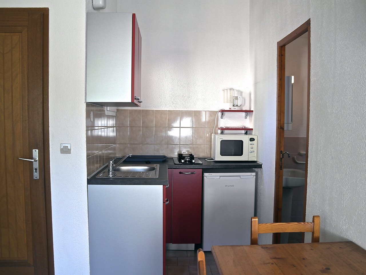 Ein 25 m² großes Apartment im klassischen Design, bestehend aus zwei Zimmern: einem Wohnzimmer mit einem Bett im BZ oder Schlafsofa, Esstisch und Fernseher, einem Schlafzimmer mit zwei Betten, einem Küchenbereich (2 Kochplatten, Mikrowelle, elektrische Kaffeemaschine), Dusche/WC, Klimaanlage, 6 m² großer Terrasse mit der Möglichkeit, Ihre Mahlzeiten einzunehmen, WLAN.