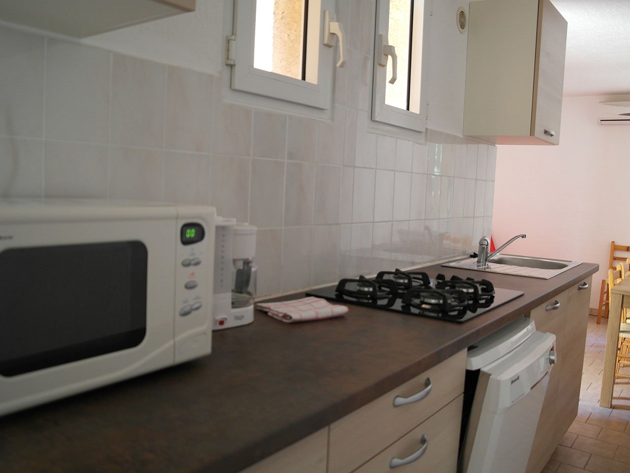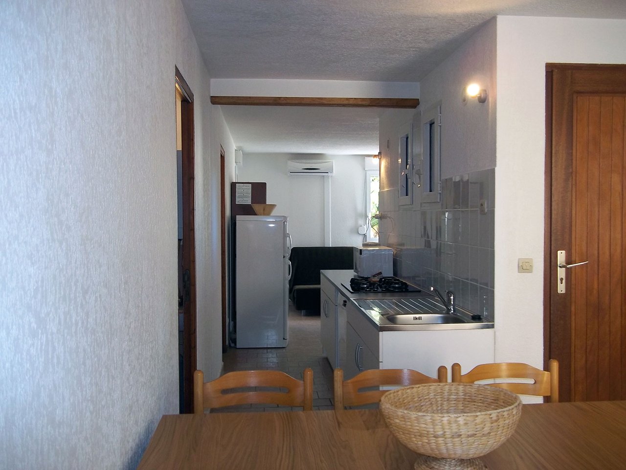 Eine komfortable Dreizimmerwohnung von 50 m² im klassischen Design, mit einem Wohnzimmer mit zwei Doppelschlafsofas, Esstisch, Fernseher, einem Schlafzimmer mit einem Doppelbett (140), einem Schlafzimmer mit zwei Betten, Kochnische (Geschirrspüler, 4 Kochplatten, Toaster, Mikrowelle, elektrische Kaffeemaschine), zwei Duschen/WC, Klimaanlage, zwei Terrassen von 6 m², WIFI.